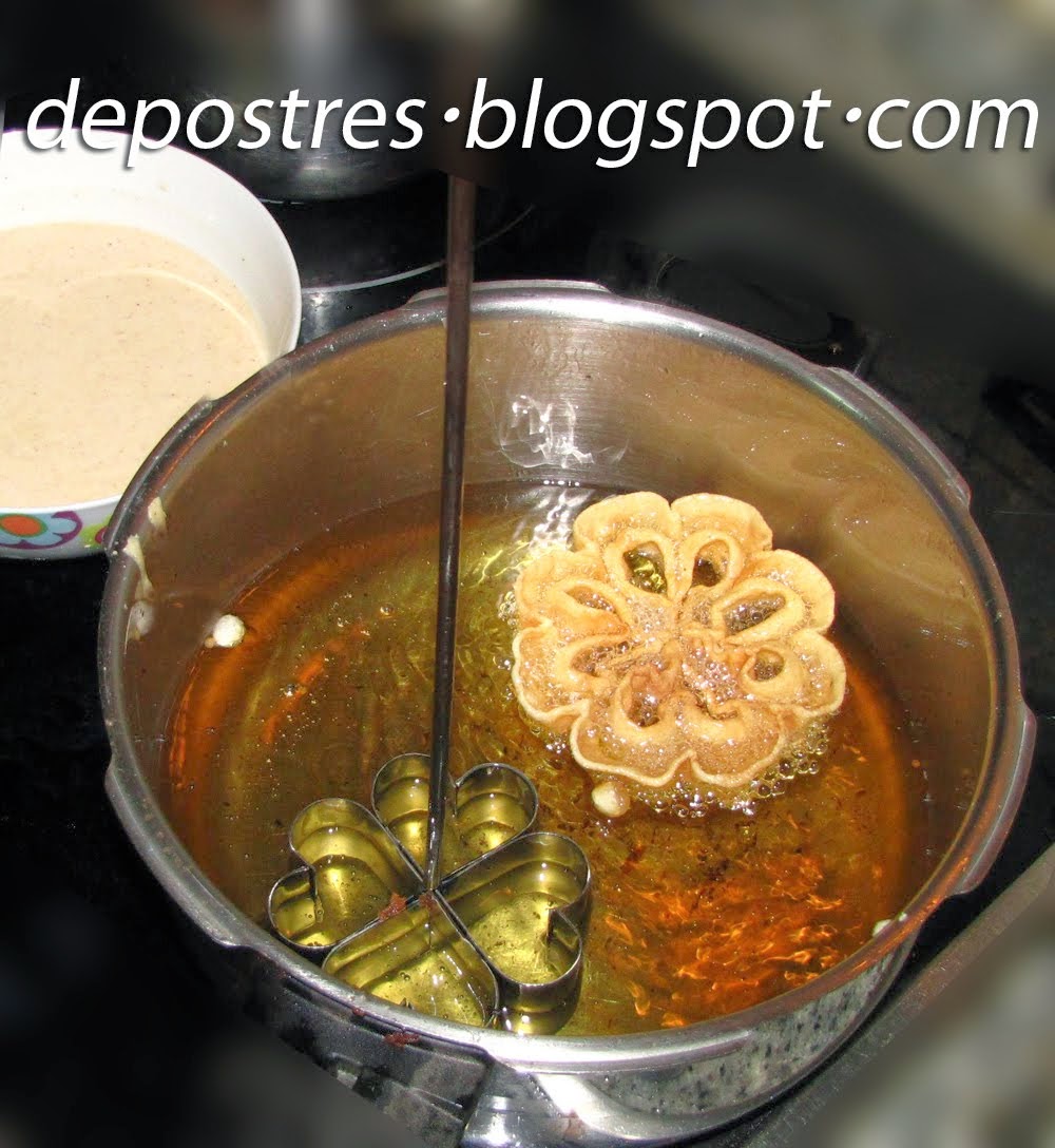 Estas flores las hacía mi suegra, cuando íbamos a su casa por semana santa. A mí me resultó muy curioso el utensilio que usaba para hacerlas porque no lo había visto antes, ya que en mi pueblo no tenemos costumbre de hacerlas pero están muy ricas.