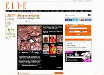No soy muy dada a participar en concursos así que no creo que vaya a ganar muchos premios, claro que tampoco es mi intención. Mi blog es sencillamente para compartir con quien lo tenga a bien mis recetas favoritas y mis descubrimientos en la cocina. Sin embargo, y sin pretenderlo este blog me da muchas alegrías y la última fue la sorpresa que me lleve al visitar una web en la que veo que recomiendan mi blog. En la página de Elle